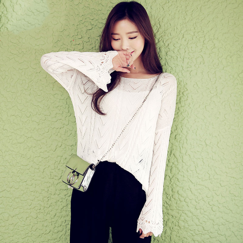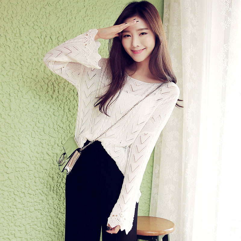 韩都衣舍秋冬喇叭长袖针织衫毛衣女套头宽松纯色百搭学生韩版打底 领券下单立减/单件包邮/先拍先发货!
